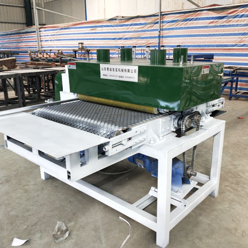 優(yōu)勢(shì)3:機(jī)器進(jìn)料是砂光機(jī)履帶式進(jìn)料,運(yùn)轉(zhuǎn)平穩(wěn),不跑偏,尺寸精確,直線度好;壓料為聚氨酯彈性壓輥,上面六道壓輥,摩擦力大,尺寸精度正負(fù)10絲以內(nèi)。
